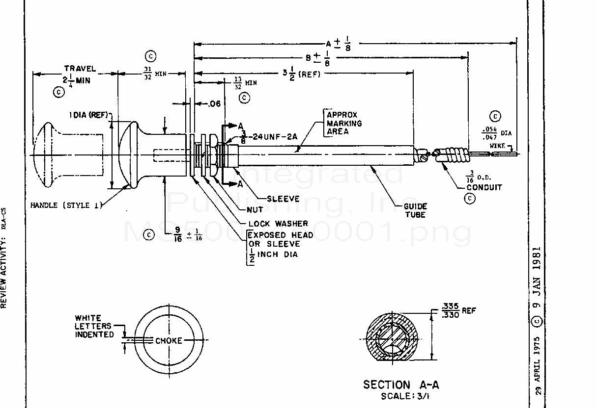 MS500045 Control Assembly, Push Pull: Choke, Engine (S/S By A-A-52480)
